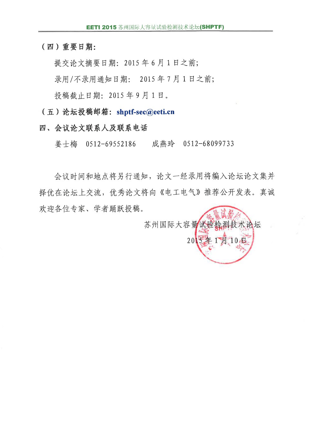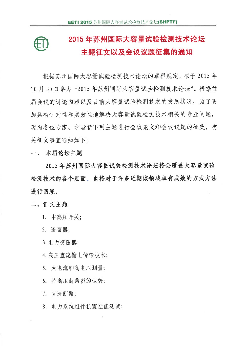 2015年蘇州國際大容量試驗檢測技術(shù)論壇征文通知
