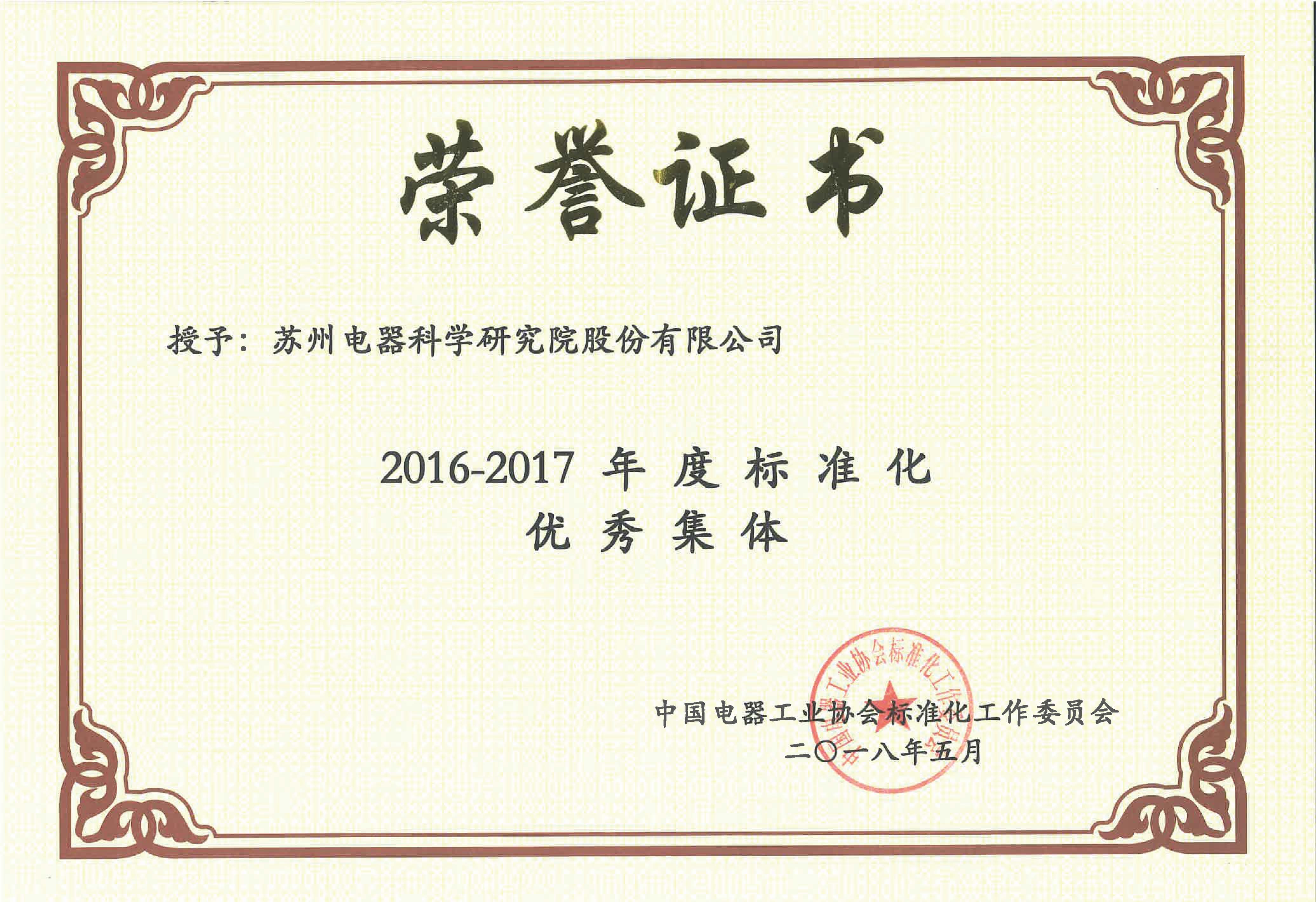 同時,在本次大會上揭曉的中國電器工業協會2016-2017年度標準化優秀集體和優秀個人我院均榜上有名,這標志著蘇州電科院實施標準化戰略、推進檢測技術體系化、全面提升檢測技術水平和標準化水平,取得重大階段性成果。