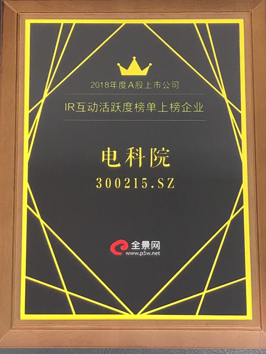 近日,公司收到全景網(wǎng)頒發(fā)的獎牌,根據(jù)上市公司在證券交易所的信披質(zhì)量等級、投資者權(quán)益保護(hù)水平、投資者互動問答頻密度、投資者關(guān)系活動活躍度等指標(biāo),公司被評為“2018年度A股上市公司IR互動活躍度榜單上榜企業(yè)”。良好的投資者關(guān)系可以有效消除信息不對稱,幫助投資者認(rèn)識企業(yè)的真實(shí)投資價(jià)值,為維護(hù)投資者合法權(quán)益提供保障,在當(dāng)前復(fù)雜的市場環(huán)境下,上市公司投資者關(guān)系(簡稱"IR")工作面臨新的變局和挑戰(zhàn),如何創(chuàng)新方式主動做好IR管理、引導(dǎo)投資者全面認(rèn)識企業(yè)的投資價(jià)值,是諸多上市公司共同關(guān)注的話題。今年3月,主題為“擁抱IR新時(shí)代--首屆中國上市公司投資者關(guān)系峰會暨 《上市公司投資者關(guān)系工作年度報(bào)告(2018)》發(fā)布會”的論壇在深圳舉辦。主辦方全景網(wǎng)根據(jù)上述指標(biāo),經(jīng)過加權(quán)綜合計(jì)算得出“2018上市公司IR互動活躍度榜單”,榜單按證監(jiān)轄區(qū),選取排名靠前、約占各轄區(qū)上市公司總數(shù)10%的企業(yè),入圍公司代表投資者關(guān)系工作在本證監(jiān)轄區(qū)屬于活躍水平,全國共有350家企業(yè)入選。