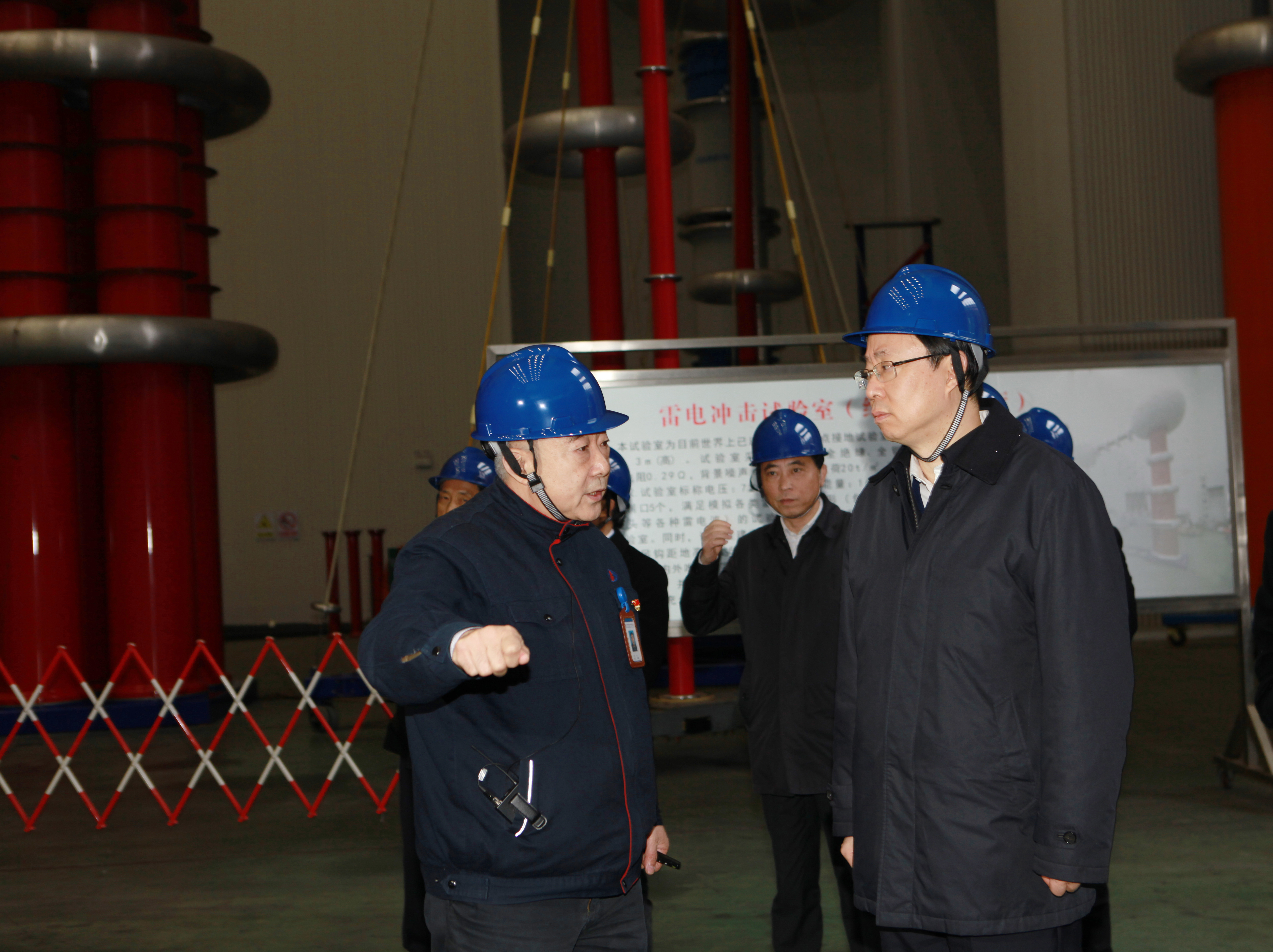 蘇科院黨委書記、院長胡德霖帶領參觀了蘇科院的雷電沖擊試驗廳、復雜氣候環境試驗廳等高壓試驗室,重點展示了蘇州電科院在自主創新和技術突破方面的巨大成就。