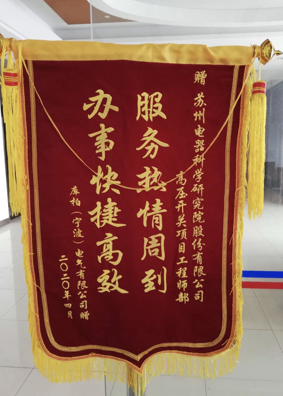近日,庫柏(寧波)電氣有限公司將寫有“服務(wù)熱情周到 辦事快捷高效”的錦旗送到了蘇州電科院高壓開關(guān)項目部,對于疫情期間測試工程師提供的高效、優(yōu)質(zhì)的服務(wù)表示由衷的感謝。
