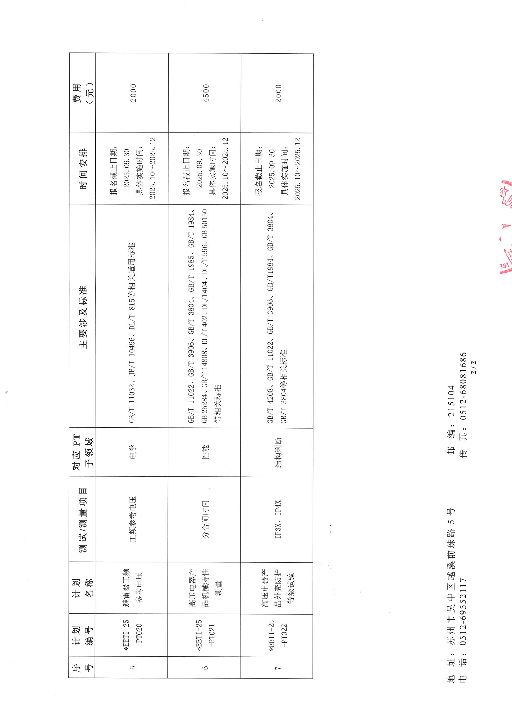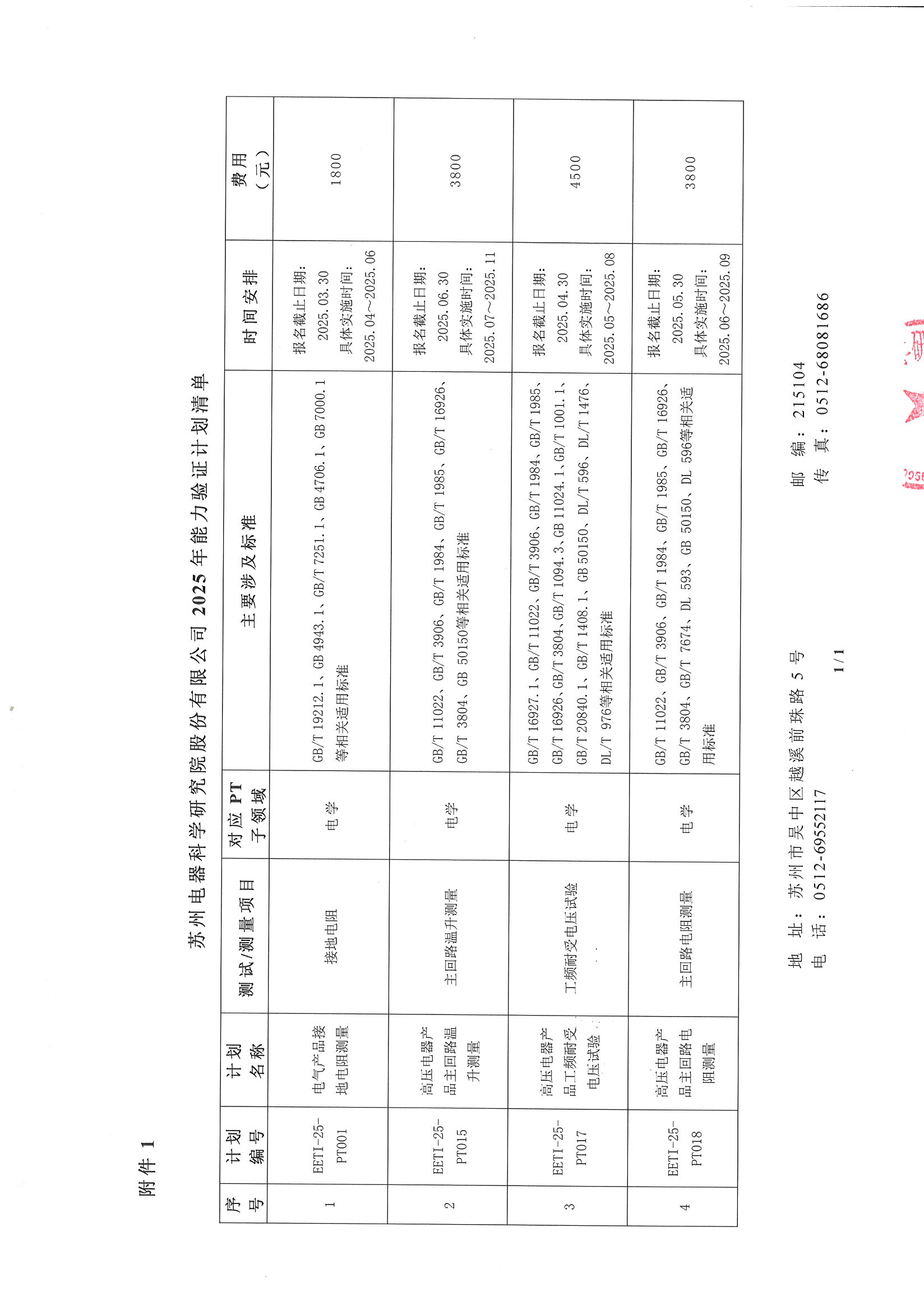 附件1:《蘇州電器科學(xué)研究院股份有限公司2025年能力驗(yàn)證計(jì)劃清單》
