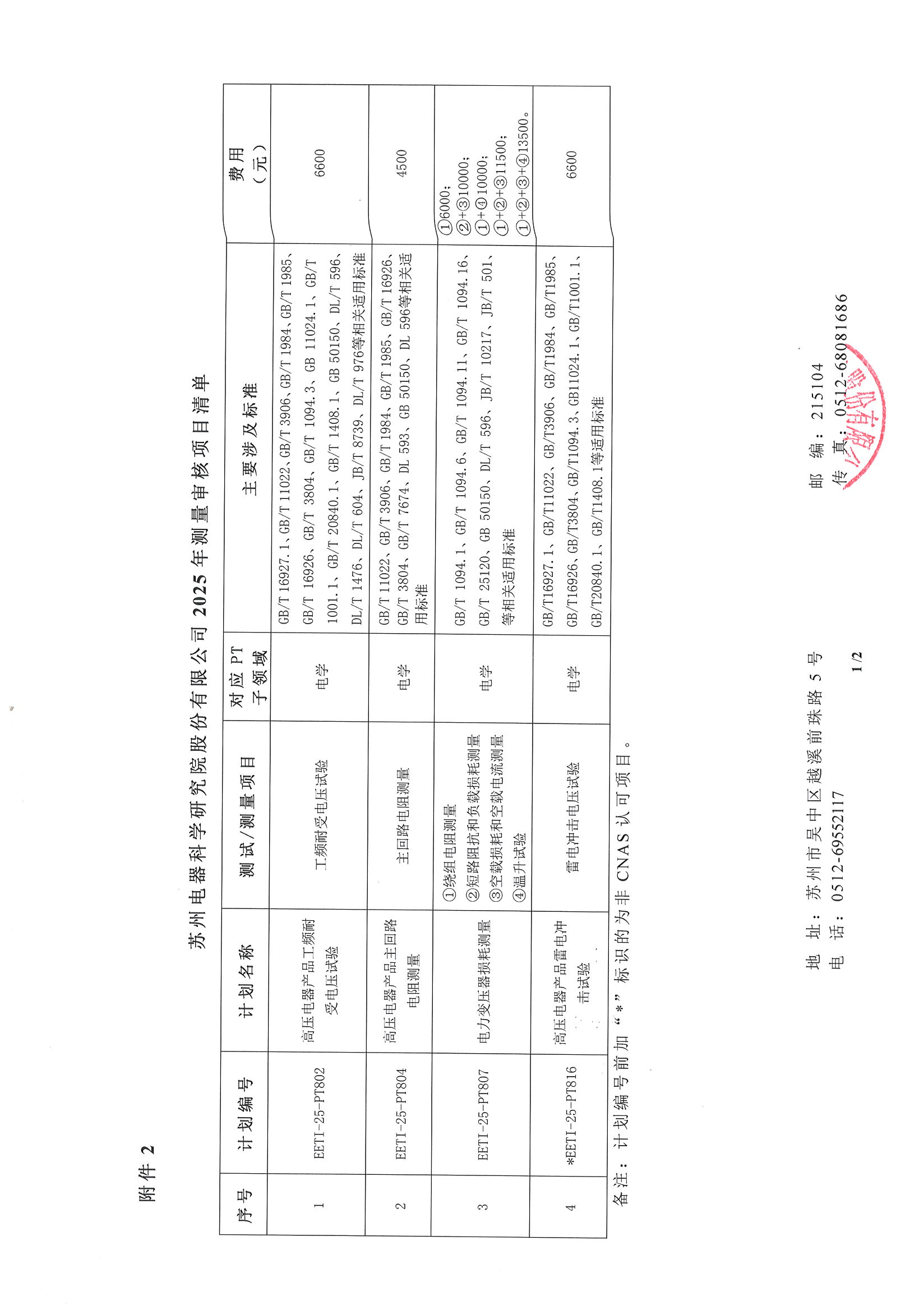 附件2:《蘇州電器科學(xué)研究院股份有限公司2025年測量審核項(xiàng)目清單》